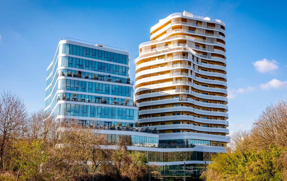 Con 17 plantas residenciales y nueve de oficinas, el edificio redefine los entornos urbanos de vida y trabajo. Además, muestra de manera ejemplar cómo las soluciones innovadoras de Saint-Gobain Glass y Swisspacer Saint-Gobain contribuyen de forma decisiva a la calidad arquitectónica y a la eficiencia energética de los edificios modernos.