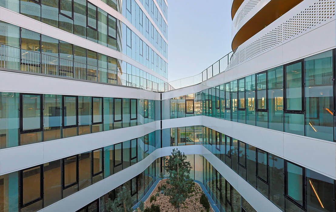 Para cumplir con estos exigentes estándares, se implementaron soluciones de acristalamiento de alto rendimiento de Saint-Gobain. “La colaboración con Saint-Gobain surgió de forma natural a raíz de los retos del proyecto. Desde el inicio, la fachada se entendió como un elemento estructural clave en términos arquitectónicos, urbanos y ecológicos”, señaló Hamonic.