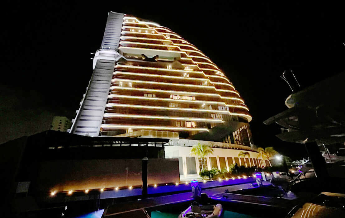 Todo lo anterior se ve reflejado en Shark Tower, un proyecto que se sale de la arquitectura común de Cancún. “Tiene un diseño que desde el inicio se realizó con la intención de que fuera muy integrable, al tener forma de aleta de tiburón, además de que el dueño del proyecto tiene un enorme aprecio por los tiburones y su conservación”, expuso. Es así que la compañía elaboró el proyecto de iluminación exterior para darle realce a esta torre por la noche, porque en el día lucen perfectamente bien sus formas y al obscurecer se requería dotarla de presencia. “Iluminamos dentro de la marina e hicimos algunos shows con efectos de iluminación que les gustan mucho a las personas. Usamos en total mil 600 metros de LEDs y reflectores de proyección de gran tamaño para iluminar las áreas sólidas que son las de servicio. Se pueden hacer proyecciones especiales en fechas o eventos específicos”.