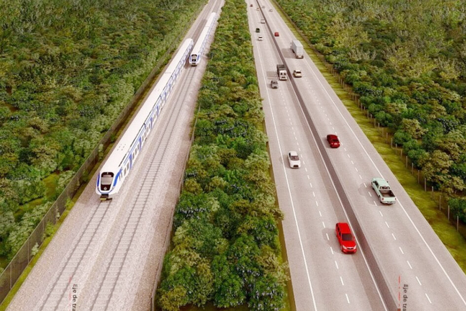 Lo anterior contempla la construcción de una sección libre de 15 metros de ancho, al centro de ambos cuerpos de vía para funcionar como plataforma ferroviaria; así como el mejoramiento del tramo carretero Cancún – Playa del Carmen, con lo cual se incrementará su capacidad a más de 80 mil vehículos diarios.