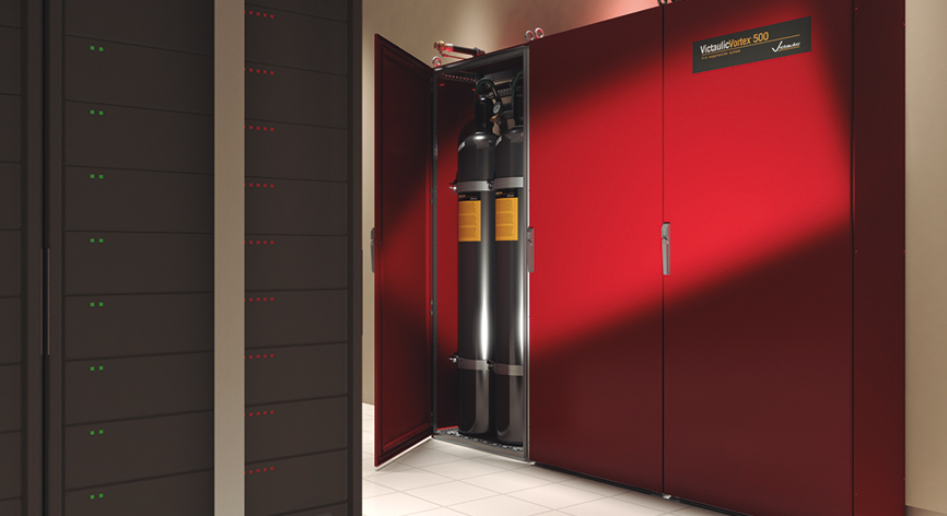 Para tener un entorno seguro, las soluciones de Victaulic, como la innovadora solución de supresión de incendios Victaulic Vortex™ son la mejor opción. Al descargarse, los sistemas Victaulic Vortex™ generan una neblina fina suspendida que consiste en un gas inerte (nitrógeno) y gotas muy finas de agua con diámetros de menos de 10 micras (1 millonésima parte de un metro), descargados al mismo tiempo a través del mismo emisor. La neblina suspendida combate el fuego reduciendo simultáneamente la temperatura y los niveles de oxígeno dentro del espacio protegido, el cual sigue considerándose seguro para los ocupantes.