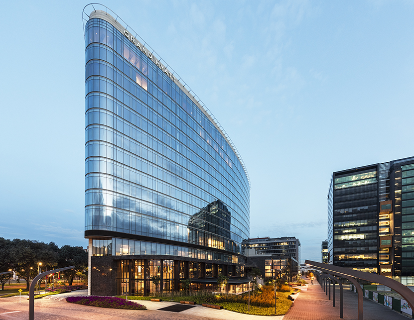 Con una singular forma arquitectónica que se destaca por su geometría dentro de la Ciudad Empresarial Sarmiento Angulo, así como la superación de diversos retos constructivos y el estricto cumplimiento de los estándares de la marca Hyatt en el diseño, construcción y en todas sus especificaciones, lo cual se ve reflejado en la calidad del proyecto, el Hotel Grand Hyatt Bogotá es sin duda uno de los proyectos hoteleros más ambiciosos en Latinoamérica, cuya gerencia y construcción estuvo a cargo de Construcciones Planificadas S.A.