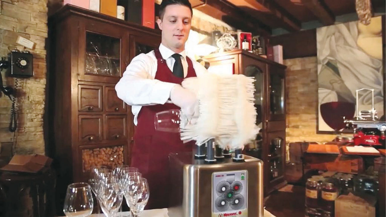 Otra solución es la máquina NICEM Secadora de Vasos, en modelos de 5 u 8 cepillos giratorios en tejido especial, que secan y abrillantan vasos de cualquier tipo, como copas de balón o incluso tipo tulipa para el vino seco o espumoso, o las jarras para la cerveza, tanto en el interior como en el exterior, eliminando restos de cal y tanino, y marcas varias. Al mismo tiempo, un ventilador emite aire caliente a una temperatura controlada para mantener los cepillos siempre secos. Gracias a esta máquina, se ahorra tiempo y gastos en mano de obra con la máxima higiene y brillo, y asimismo se reduce el riesgo de accidentes y la rotura de material.