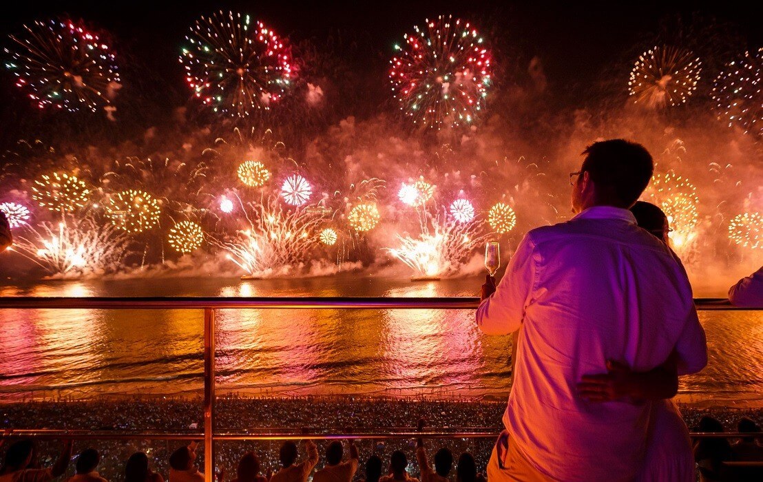 Una de las más célebres experiencias de Año Nuevo alrededor del mundo definitivamente es la celebración en la playa de Copacabana, en Rio de Janeiro. Consta de una fiesta con diversos escenarios e ininterrumpida programación de entretenimiento desde que el sol del 31 de diciembre empieza a ocultarse. Además, hay un espectáculo de fuegos artificiales de más de 15 minutos a la medianoche que dejará con la boca abierta a cualquiera.  Esta celebración, que no se realizaba hace dos años debido a la pandemia, vuelve para el cierre 2022 generando una alta expectativa entre sus visitantes; se espera que alrededor de 3 millones de turistas asistan, llevando ropa blanca, como es tradición.