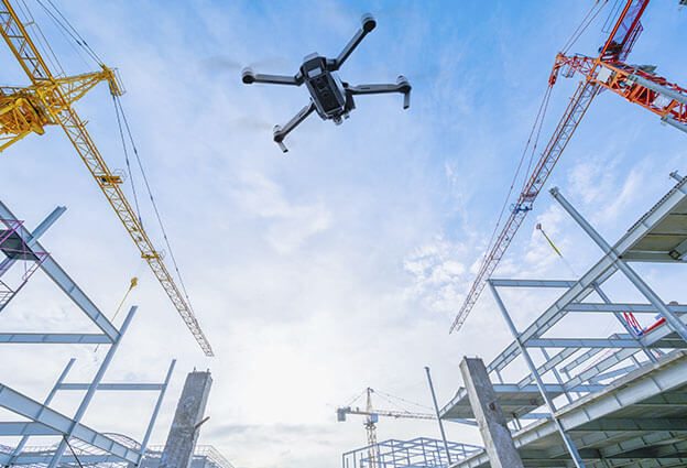 Los drones se están utilizando para transportar materiales en tiempos récord, algunos de ellos pueden estar en el sitio dentro de una hora después de realizar el pedido. También se están utilizando cámaras en drones para proporcionar una vista aérea rápida de los sitios. Esto significa que los administradores del sitio pueden obtener una descripción general rápida de la construcción, al mismo tiempo que se les alerta de cualquier peligro y riesgo oculto que puede no ser visible a nivel del suelo.