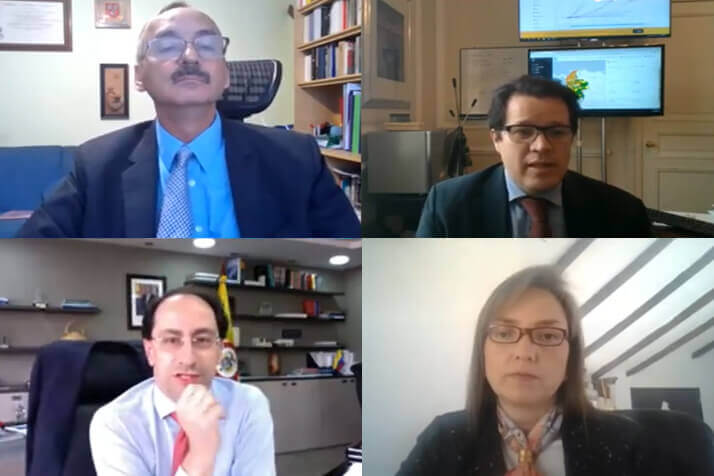 El ministro de Comercio, Industria y Turismo, José Manuel Restrepo, el consejero presidencial Victor Muñoz,  la viceministra de Transporte, Carmen Ligia Valderrama, y  la asesora del despacho del viceministro de Relaciones Políticas, Lucía Soriano, con la moderación del presidente ejecutivo nacional de Cotelco, Gustavo A. Toro Velásquez, participaron en un conversatorio organizado por Cotelco, en el que dieron claridad a importantes puntos sobre la operación de los hoteles en el país, de acuerdo con lo enunciado en el decreto 1076 de julio de 2020.