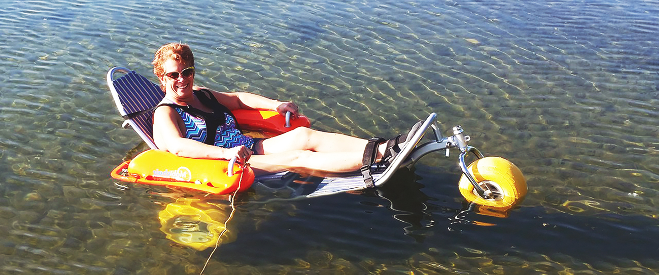 El Mobi-Chair® es adecuado para su uso en la playa y en las piscinas, es cómodo y estético. Mobi-Chair® es visualmente placentero y agradable debido a su calidad y apariencia. Los usuarios pueden reclinarse en una posición cómoda mientras conducen, se bañan o se sientan por largos períodos de tiempo. La atractiva tela es antialergénica, resistente a los rayos UV, resistente al agua y ventilada para un rápido secado.